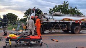 Com o impacto, o Gol foi lançado para fora da pista e, posteriormente, atingiu o caminhão baú. Os ocupantes do Gol e do caminhão baú não sofreram ferimentos. Já o motorista do caminhão-tanque ficou preso às ferragens da cabine, que ficou destruída.