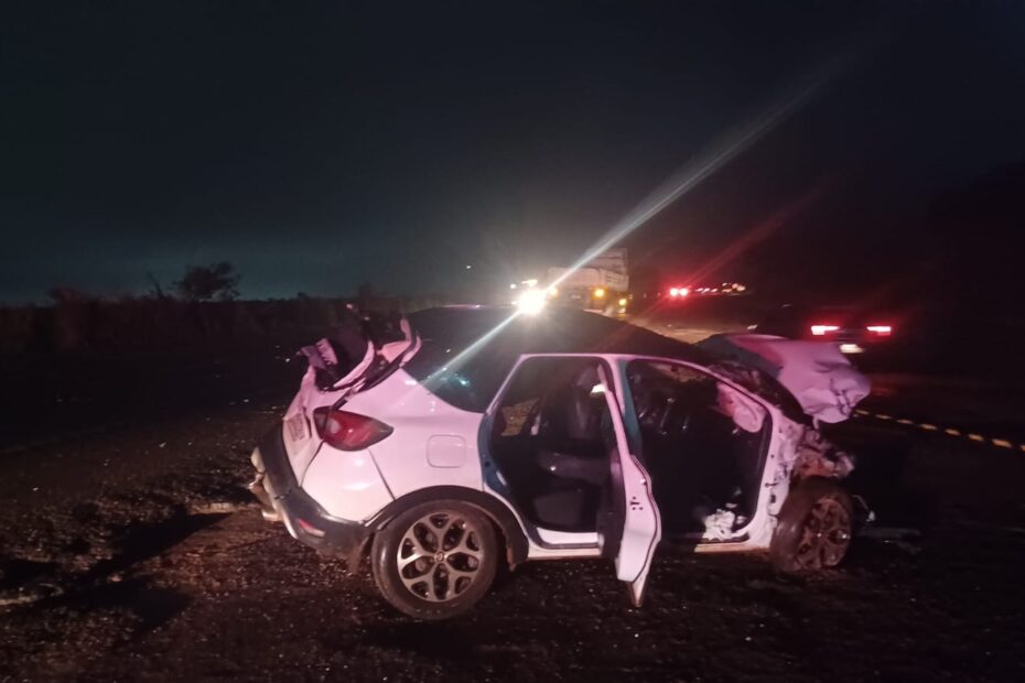 Acidente entre carro e carretas deixa motorista preso às ferragens na BR-163 em Campo Grande