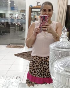 A partir dali, a cabeleireira enfrentou um dos períodos mais difíceis de sua vida. Ela passou por cirurgia, 18 sessões de quimioterapia e 30 sessões de radioterapia, em um tratamento que se estendeu por dois anos, sendo concluído em 2023. Mesmo assim, ela não fechou o salão. Com fé, força e determinação, continuou atendendo suas clientes, mesmo nos dias de maior cansaço.