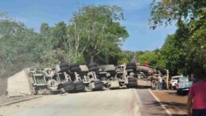 Uma carreta tombou na manhã desta quarta-feira (15), em um trecho da BR-262 que liga Terenos a região conhecida como Redondo, próximo a Dois Irmãos do Buriti, a 115 km de Campo Grande. O acidente, que ocorreu por volta das 9h da manhã, bloqueou totalmente a via causou um congestionamento de cerca de 2km local.