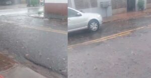No bairro Coophatrabalho, a chuva veio acompanhada de muito granizo e moradores reclamaram da oscilação constante de energia no bairro quando o tempo fecha.