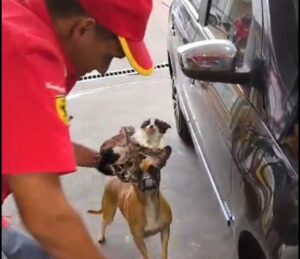 O animal apresentava alguns ferimentos, mas foi resgatado e entregue a uma mulher que está cuidando dele. A cena inusitada atraiu a atenção de clientes e funcionários do posto, que acompanharam o momento com surpresa e alívio.