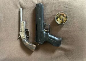 Imediatamente, a Polícia Civil cumpriu busca domiciliar e localizou uma garrucha calibre 22 e mais de 20 munições, todas em posse irregular do suspeito. Com isso, ele foi preso em flagrante pelo crime de posse irregular de arma de fogo de uso permitido (art. 12 da Lei 10.826/2003).