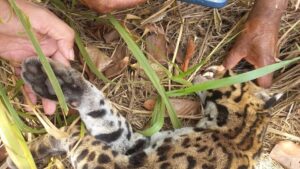 Um morador de Chapadão do Sul encontrou uma jaguatirica morta por atropelamento nas imediações do Rio Prata. Neste local são comuns animais da fauna nativa abatidos.