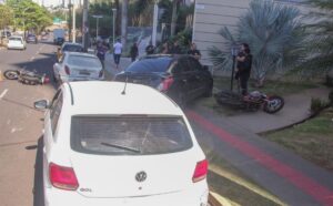 Um motociclista ficou ferido durante um acidente que envolveu cinco veículos na Avenida Ricardo Brandão, na Vila Manoel da Costa Lima, em Campo Grande. A colisão aconteceu na manhã desta terça-feira (23).