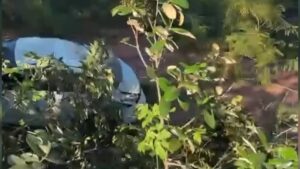 O veículo saiu da rodovia, mas as circunstâncias que levaram o motorista a perder o controle não foram detalhadas.