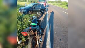 Um carro capotou após bater em uma motocicleta na manhã deste domingo (15), na BR-376, próximo a um pesqueiro, em Ivinhema, município a 286 quilômetros de Campo Grande. Pelo menos duas pessoas ficaram feridas e precisaram de atendimento.