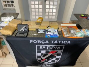 Com ele, os militares encontraram porções de maconha e, após questionamentos, o suspeito revelou onde estaria guardado o restante do material. No endereço indicado, os policiais localizaram uma grande quantidade de drogas, além de uma arma de fogo e dinheiro em espécie.