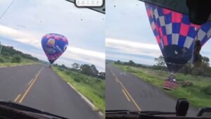 Pouso de um balão às margens da Estrada de Três Barras, em Aquidauana, pareceu assustador para quem estava distante da estrutura. No entanto, conforme registro em vídeo, a situação do baloeiro estava sob controle.