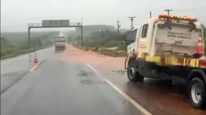 As autoridades de trânsito orientam que, sempre que possível, os condutores reduzam a velocidade e mantenham distância segura dos demais veículos ao passar pelo local. Até o momento, não há registro de interdição total da rodovia.