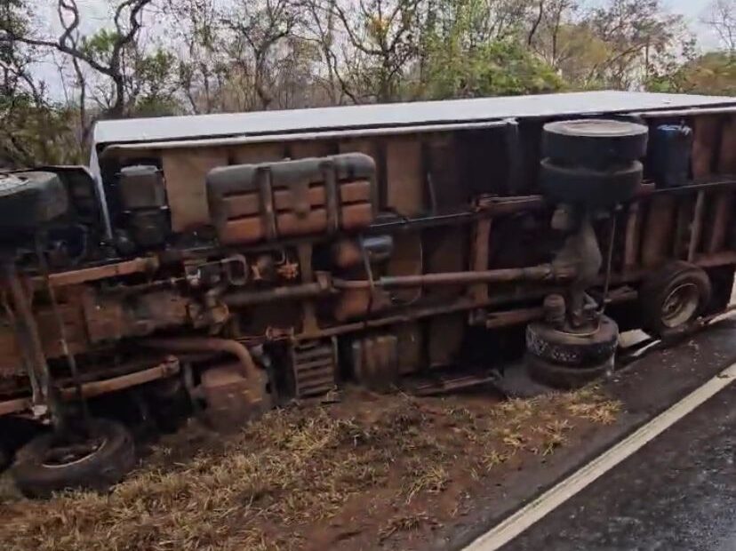 Caminhão tomba na Serra de Camapuã e motorista sai ileso