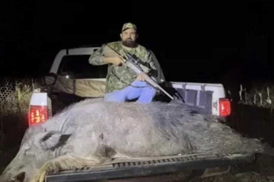 Empresário abate javali de 300 kg em ação legal de controle em Rio Brilhante