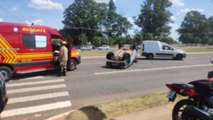 Uma kombi bateu em um Fiat Uno no início da tarde desta quarta-feira (15), e causou um capotamento na Avenida Duque de Caxias, bairro Santo Antônio, em Campo Grande, na frente de um atacadista.